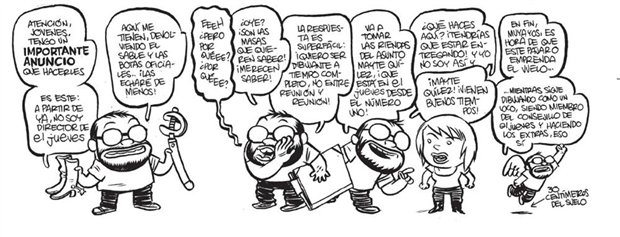 Como decía antes, mirando hacia atrás, de lo que estoy más contento es de haber servido de avanzadilla para que mi generación entrara en El Jueves y marcara, en cierto modo, esa época. Muchos lectores de los ochenta nos odiaban, pero con el tiempo me he ido encontrando a mucha gente que recuerda esa etapa con mucho cariño. Ya me vale.