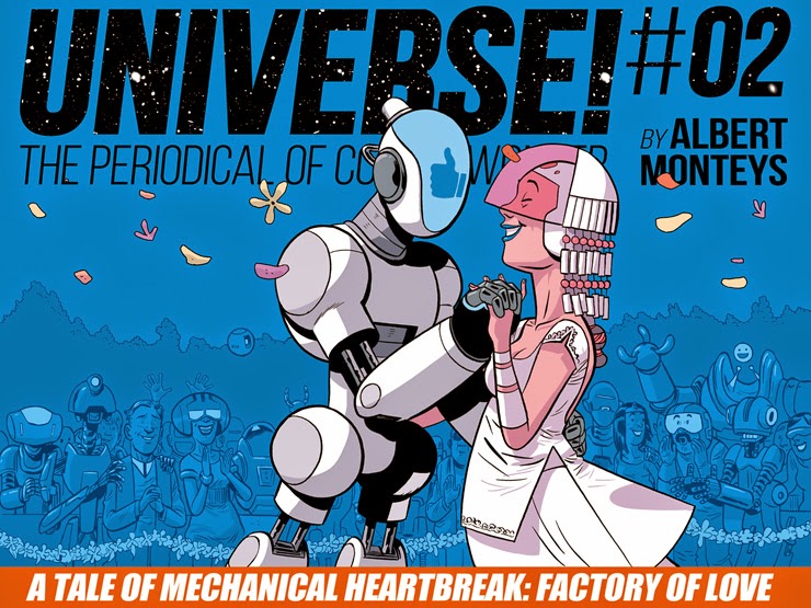 Marcos Martín, Munsta Vicente y Brian Vaughan habían fundado el año anterior la web de panelsyndicate.com, desde la que distrubuían su cómic digital The Private Eye. Una apuesta muy loca y muy valiente por poner al creador en primera línea ante el lector. Marcos iba buscando otra serie para incorporar a la plataforma y me propuso que pensara algo. Como cuando hago lo que quiero hago ciencia-ficción y Marcos me dijo que hiciera lo que quisiera, le presenté ¡Universo!, una serie de relatos cortos interconectados entre ellos, a veces de maneras muy obvias, a veces más discretas. Siempre me han gustado los relatos cortos de las revistas clásicas que a mí me llegaban a través de esos recopilatorios que en los 70 y 80 publicaba Bruguera y me parecía una buena manera de encontrar un montón de cosas muy distintas manteniendo una cierta coherencia y espíritu de colección.