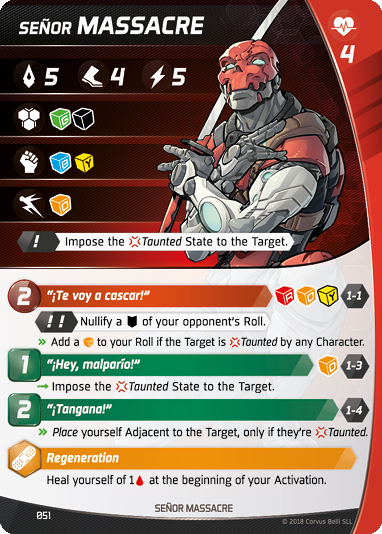 Con el cambio de Bola 8 por Maximus, puede ser interesante añadir a tus grupo aristos al Señor Massacre, para cambiar completamente de estilo de juego. Aquellos provocados por Maximus son objetivos válidos del dado extra de ataque del Señor Masacre «Te voy a cascar» y en escenarios agresivos puede suponer el jugador decisivo con su regeneración. Mejores tácticas: ¡Dímelo a la cara!, para sacar a los rivales provocados de la zona de anotación o que jugado en una miniatura aliada con «Provocada» puede acercarle a una zona de anotación; y «Regeneración Épica» para acabar con los planes de rival de ganar un frag y sacar un jugador de juego