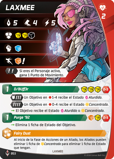 Solo Laxxme parece ser el cambio mas parecido por el estilo de juego que hemos decidido. Hexx3r permite potencia a los aliados o entorpece a los contrincantes, en ambos casos su principal herramienta es el “Desplazar”. Laxxme no realiza ese juego, pero la posibilidad de mejorar a los aliados con “Concentrado” o entorpecer a los contrincantes con “Aturdido” hacen que sea el cambio más natural; lo malo, solo tiene 2 heridas.