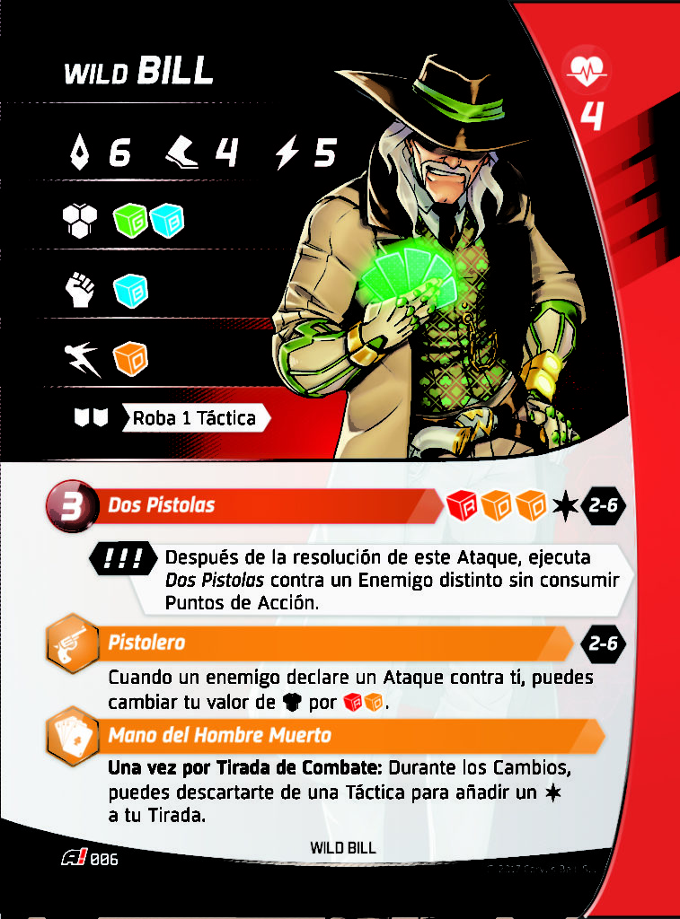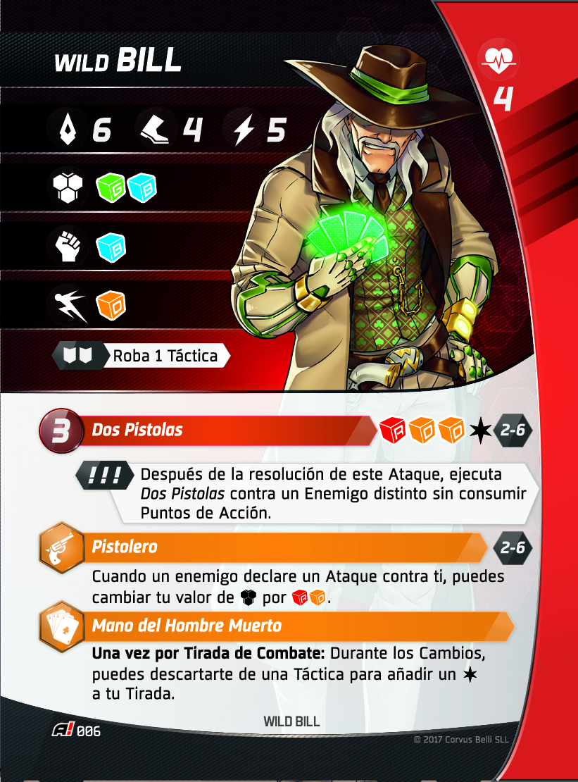 Posiblemente el cambio más difícil de decidir: Wild Bill o Hannibal. Wild Bill posee una buena habilidad de ataque y cambios muy interesantes, que pueden dar varias fichas de frag, junto con la táctica “As de Corazones” que te permite recuperar una carta del descarte le hacen estar; Hannibal su ataque necesita que el equipo le apoye pero bien jugado puede ser demoledor, además de potenciar a los aliados, además sus tácticas van ganando enteros, sobre todo la táctica «Code <Time Out>». La elección no es fácil y depende de los gustos, de momento nos quedamos con Wild Bill, por ser más independiente del resto del equipo.