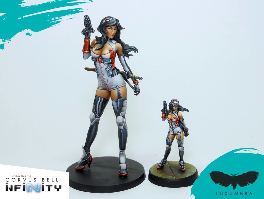Hace poco se ha lanzado el proyecto Luxumbra, una empresa para satisfacer a los coleccionistas de este juego, con miniaturas de escala mayor (75mm) y bustos de los personajes más relevantes de Infinity.