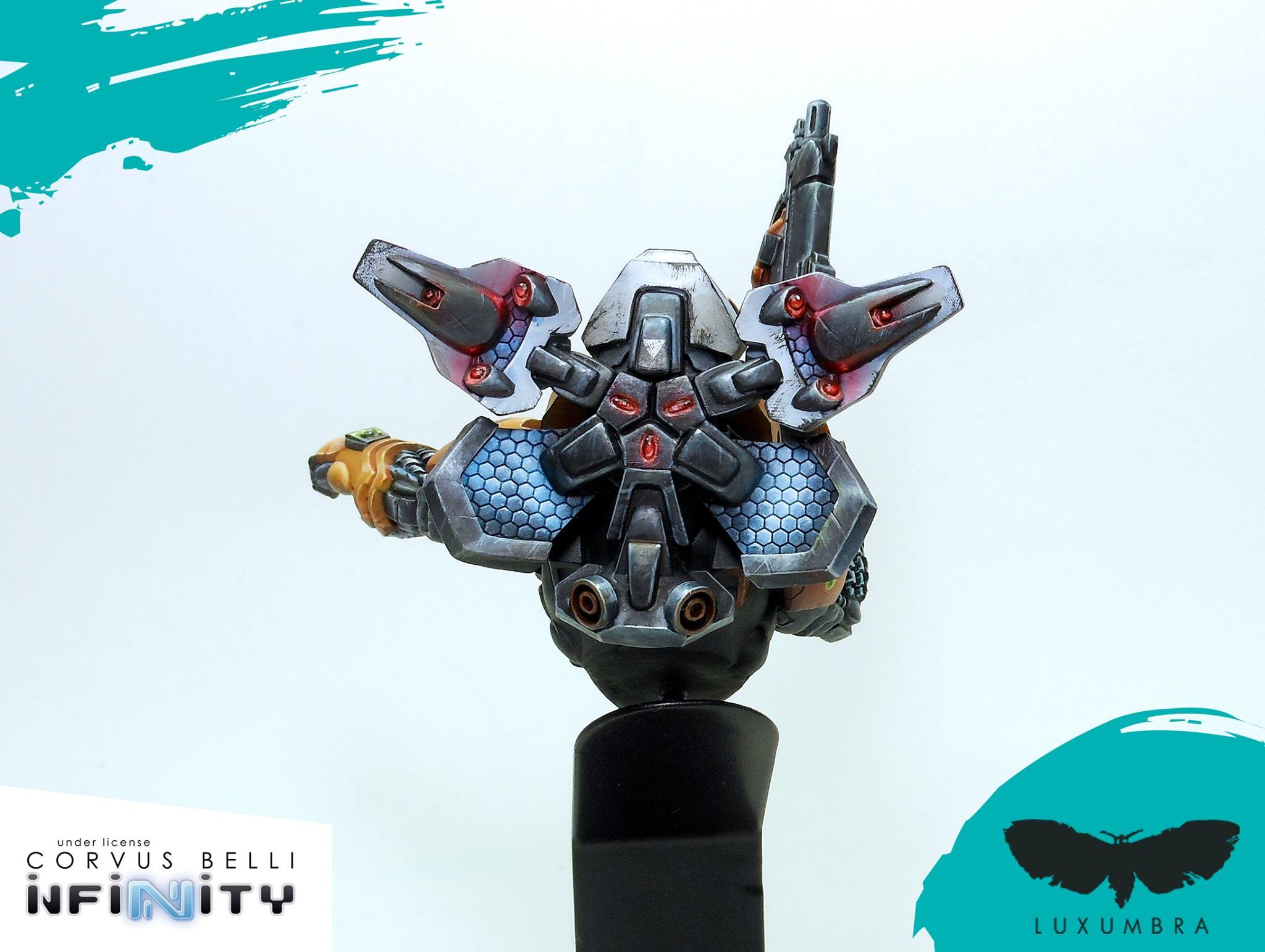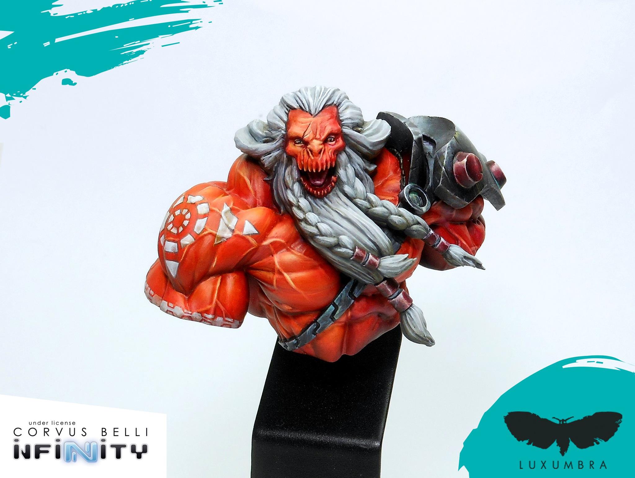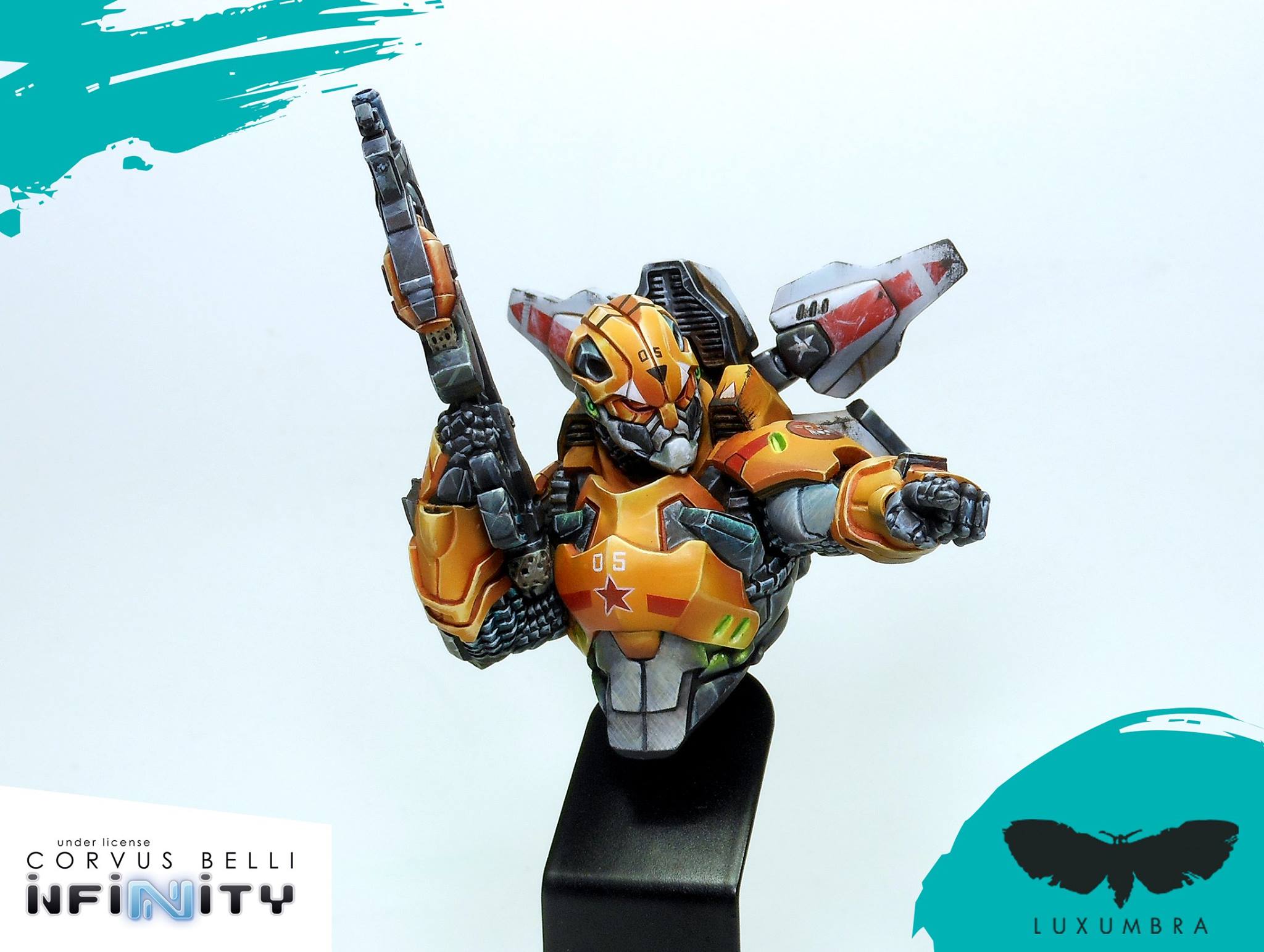 Hace poco se ha lanzado el proyecto Luxumbra, una empresa para satisfacer a los coleccionistas de este juego, con miniaturas de escala mayor (75mm) y bustos de los personajes más relevantes de Infinity.