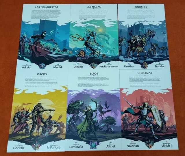 Héroes es uno de esos juegos que parece sencillo, dónde la miga está en los detalles. Llevarás una de las seis facciones: humanos, no-muertos, gnomos (la única opción real), orcos, elfos o nagas. Cada una tiene unas características diferentes, vamos a verlas rápidamente y las ordenaremos de menor a mayor dificultad.