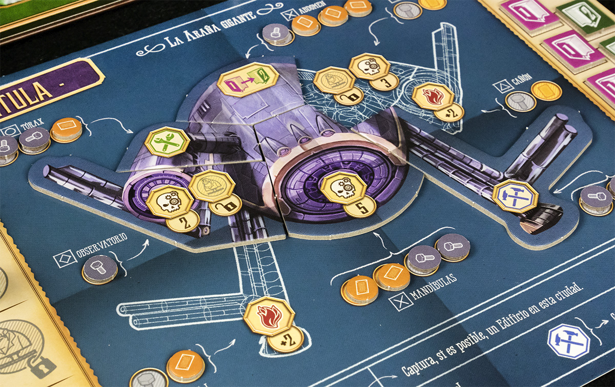 Genios Victorianos es un juego con mecánica programación de acciones mediante la colocación de trabajadores o esbirros. El objetivo será imponerse al resto de villanos provocando el mayor caos posible, en forma de punto de desórdenes civiles.