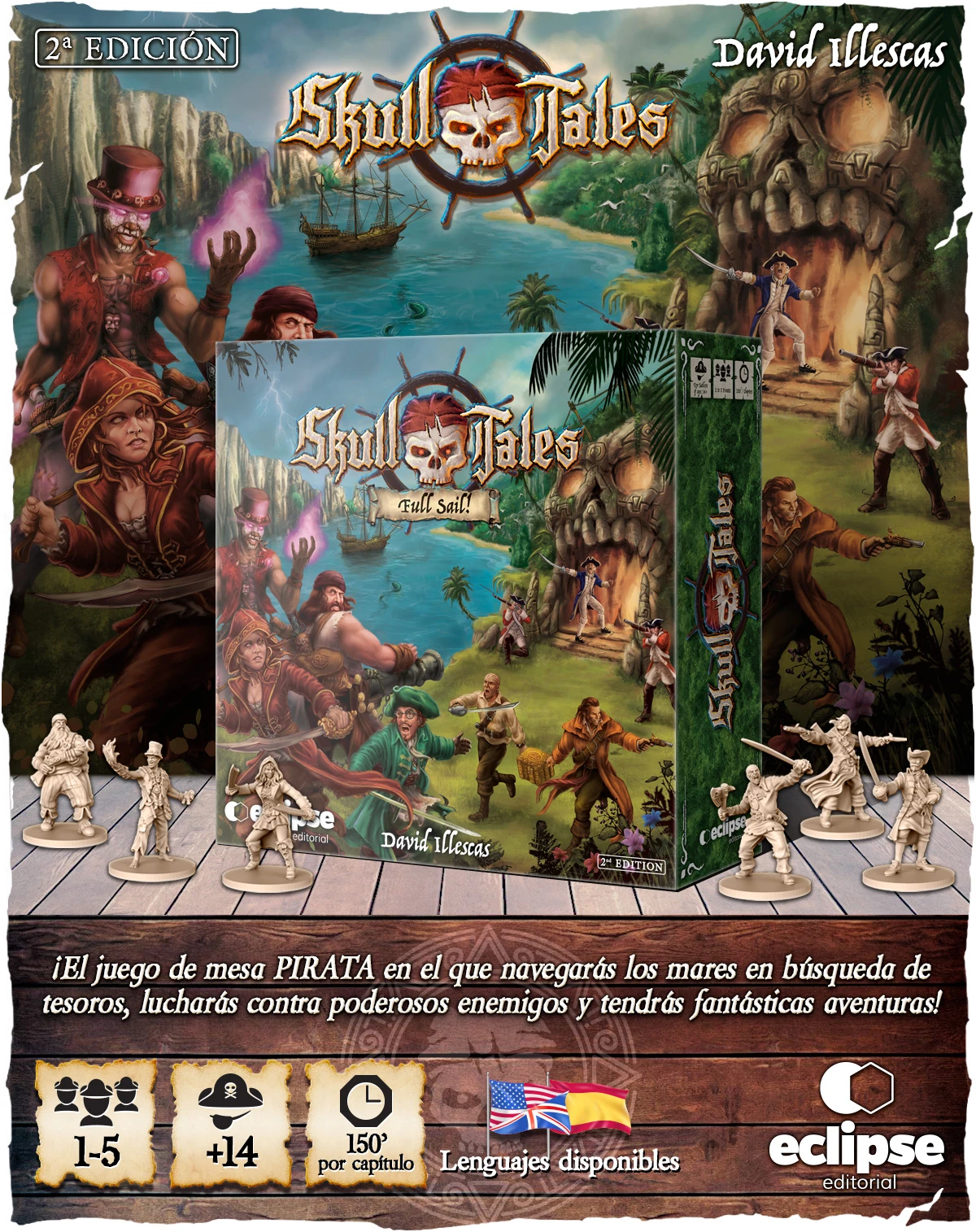 Las historias de piratas siempre me han atraído. Sí, lo sé, no soy el único que ha disfrutado con Black Sails, One Piece o incluso Peter Pan (aunque odie a muerte más de dos tercios de la obra). Entre estos amantes del género, seguro, está el diseñador de Skull Tales David Illescas (publicado en 2015, ahí es nada). Yo conocí el juego más tarde, en su reedición de 2019 bajo el sello de Eclipse, y es uno de mis juegos preferidos. Ahora, este uno de Abril vuelve, con su segunda edición, a Gamefound y creo que no te lo puedes perder.