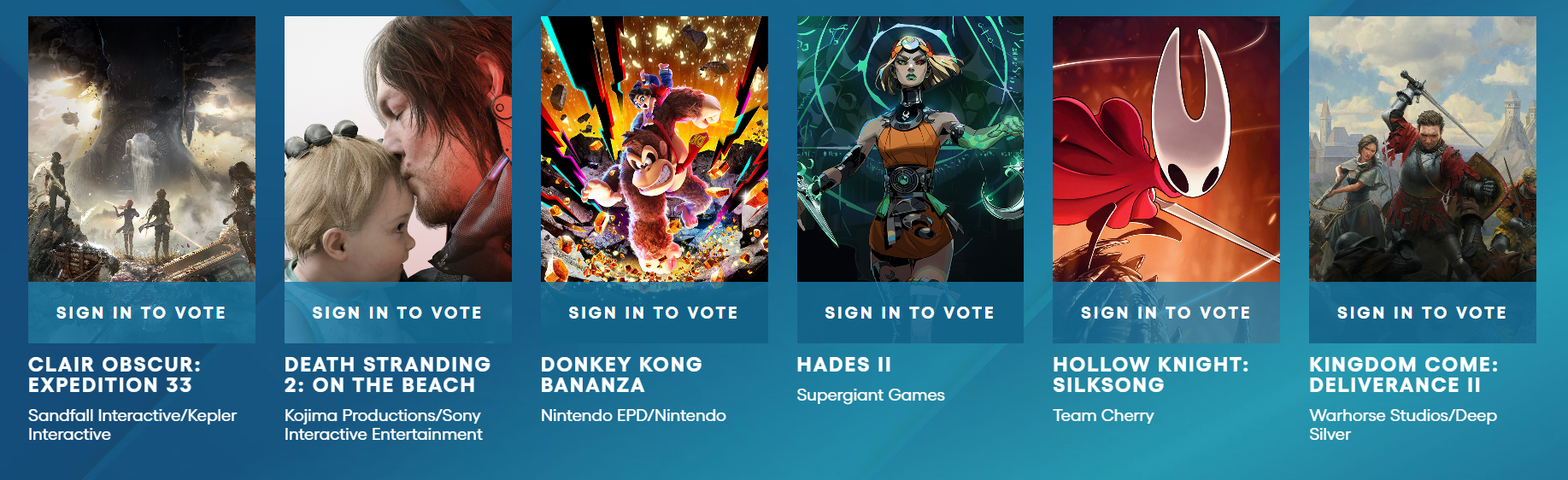 Seis títulos compiten este año por el máximo galardón al Juego del Año (Game of the Year o GOTY), con el debutante Clair Obscur: Expedition 33 liderando la carrera frente a veteranos como Death Stranding 2 y Hades II.