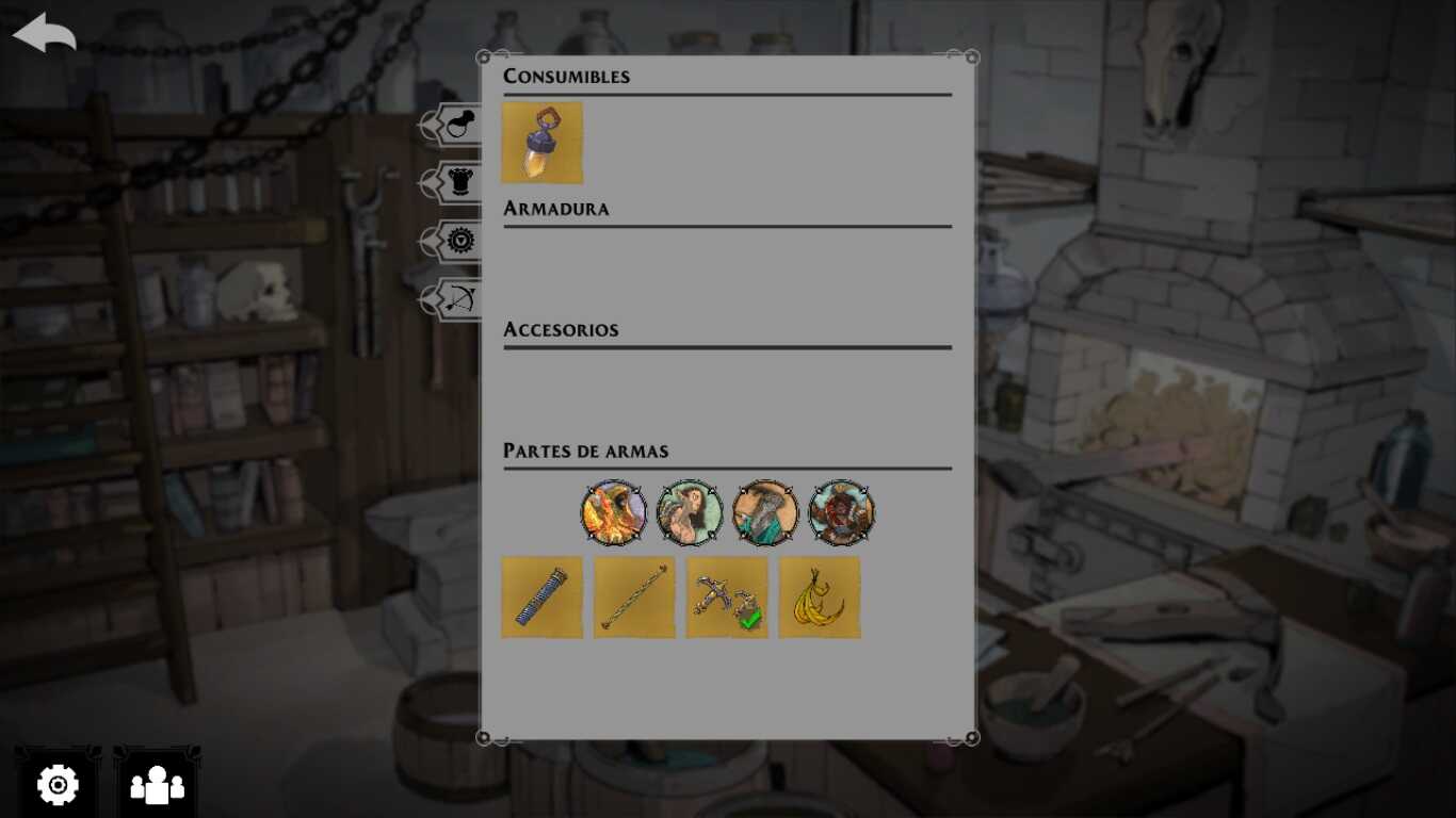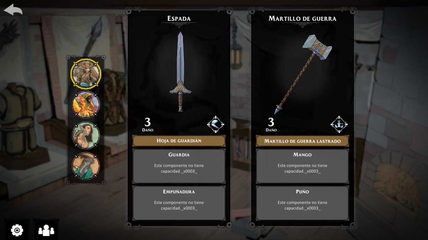 Aquí, debo añadir, creo que hay un decisión de diseño. La aplicación podría gestionar también las armaduras, pociones y abalorios. Eso, primero, sería más trabajo para el programador y, segundo, quitaría aún más la experiencia de juego de mesa. Por eso estos elementos se dejan al jugador, para que sienta más la partida. Y, de paso, te ahorras un desarrollo.