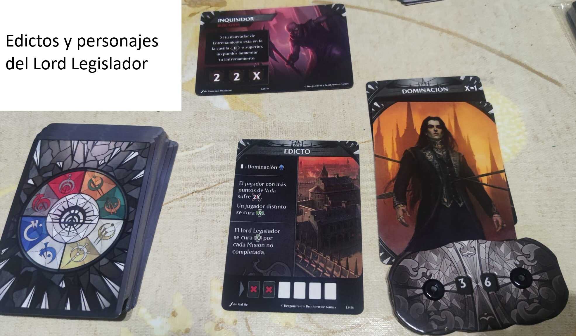 Vamos a ir por partes ya que juego tiene miga. Empecemos algo que ni siquiera he explicado: el modo solitario y cooperativo. Estas dos maneras de jugar nos ponen como enemigo al Lord Legislador. Por cada turno de un jugador se sacará una carta de su mazo concreto y ella nos dificultará. En este modo de juego, aviso, es imprescindible centrarse en hacer las misiones.