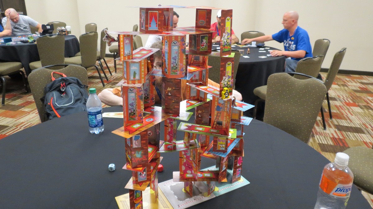 Con un suelo de una sola pared y sin monos araña, Rhino Hero podía ser encerrado entre cuatro paredes, de manera que no pudiera ser cogido sin derrumbar la torre. “¡Eso no vale!” – Decía Juls; “Revisemos el reglamento” – Decía el resto. “¿Cómo habéis podido encontrar un resquicio en un juego infantil?” – Respondió Juls, otra vez – “Sea como sea, en el reglamento no dice nada que no se pueda hacer” – terminamos mientras colocábamos la última pared. Al final Juls acabo ganando, no conseguimos colocar la pared sin que cayera parte del rascacielos, pero a los días Haba confirmo que “Emparedar un Rhino Hero es totalmente legal”, por lo que nos consideramos vencedores morales del primer Corneto Torneo de Rhino Hero.