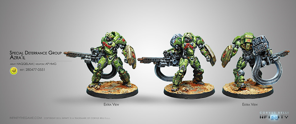 Haqqislam es sin duda una facción única dentro de los Infinity y de muchos de los wargames. Como comentábamos al principio, no solo supone una facción centrada en una nación, sino en un pensamiento. Haqqislam son los grandes califatos de Al-Andalus en su momento de mayor esplendor. Todos los haqqislamitas pueden ser llamados a filas. Por ello su base de tropas ligeras y batidores son relativamente baratas. Completa su lista con las tropas más exóticas del juego: asesinos, paracaidistas suicidas o un TAG con forma de escorpión.