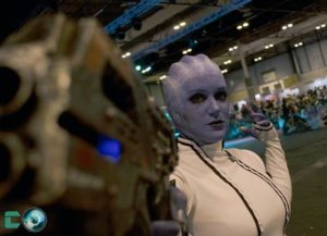 Creo que me quedé impactada desde el momento en que llegamos. Nada más bajarme del coche, una cola inmensa fuera de IFEMA, para poder entrar al acontecimiento. No me imaginaba que tanta gente era fan de ese tipo de ‘’cosas’’ y que, menos, en un día como el que hacía de lluvia, la gente iba a estar esperando para entrar con tantas ansias, con trajes algunos más elaborados y otros más destartalados por el temporal, pero todo el mundo con un aire muy especial. A la entrada del pabellón, sinceramente, me quedé alucinada, la luz muy diferente a la de otros lugares en los que había estado, luz cálida y tenue mezclada con la sensación de fábrica impuesta por la propia arquitectura del espacio, daban la sensación de estar en un videojuego, no solo por las características del lugar si no porque nada más entrar la música y la gente disfrazada era increíble. Toda esta sensación dramática que os describo se compensaba con las bonitas ilustraciones, las carcasas de los videojuegos y demás merchandising, que te hacían entrar en un mundo de fantasía.