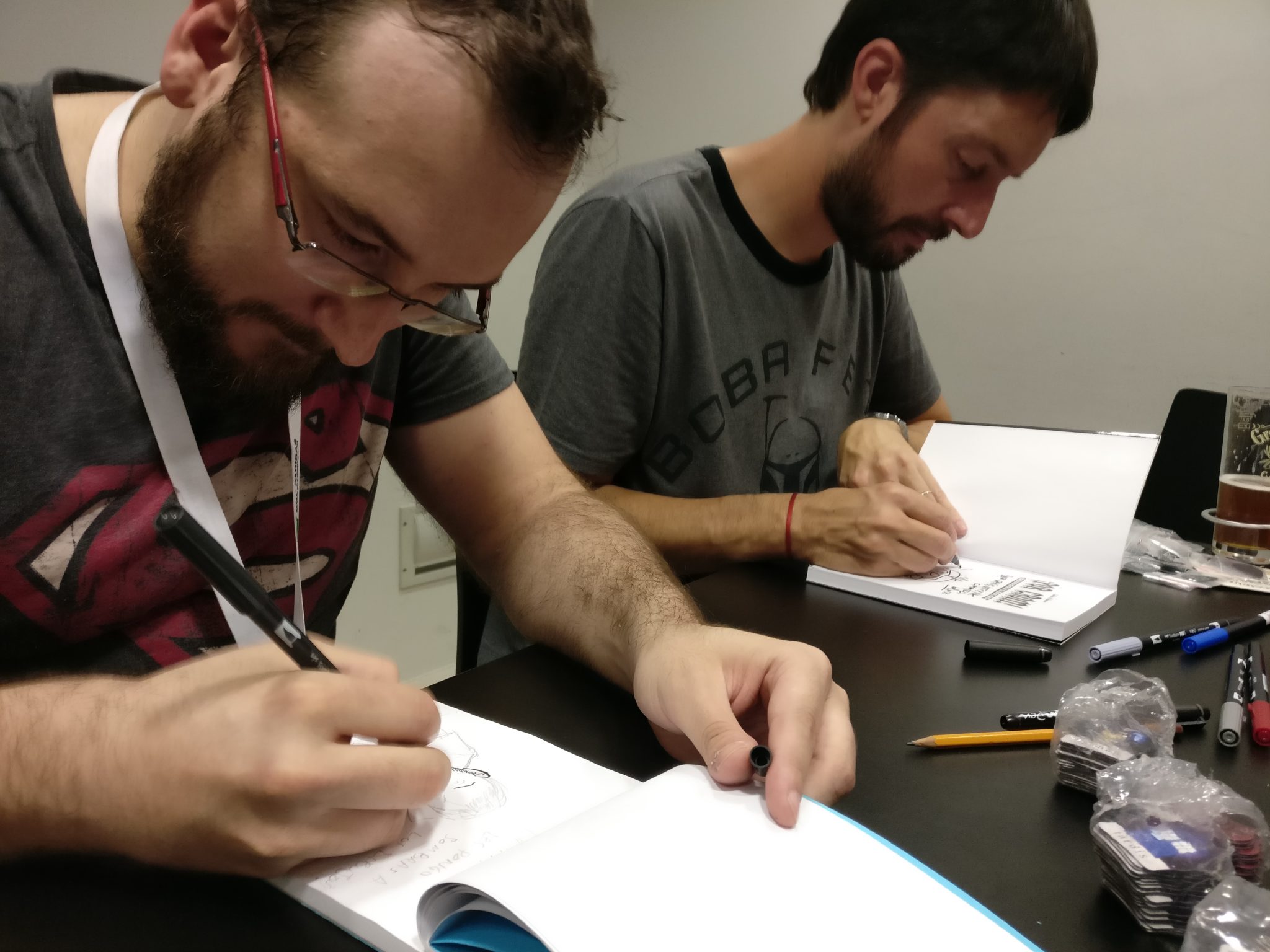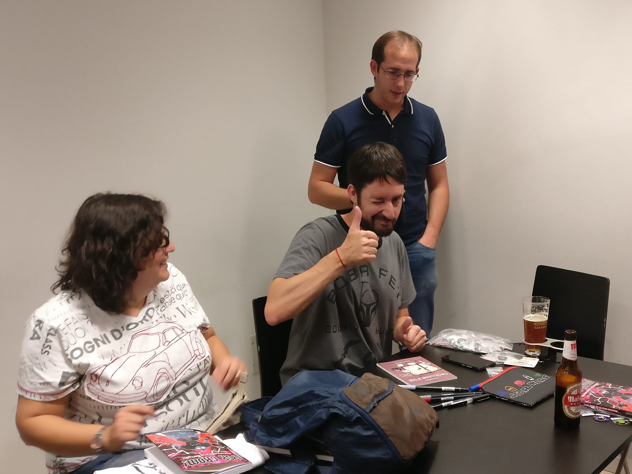 El encuentro tuvo lugar en la cafetería Mr. Mind, lo que permitió a muchos de los asistentes tomarse una cerveza y charlar de juegos de mesa o cartas mientras veían al autor dedicarle su libro y hablaban con él. Un ambiente distendido, con muchas bromas y risas alrededor de los tomos de «¡Por Crom!», además de otras recompensas adquiridas a través del Verkami que organizó este verano.